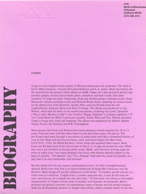 Tango was my band who had an album out on A&M Records