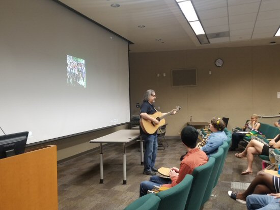 lecture/performance on the history of Chicano rock & roll with Steve Salas of Tierra for Manuel Velez' class.