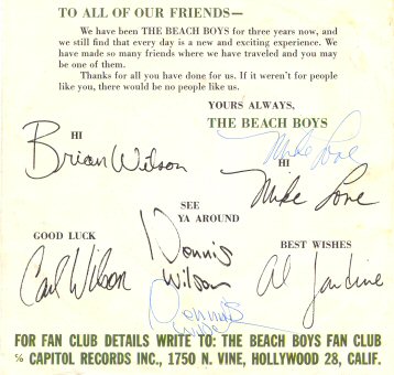 The Black signatures above are printed on the sleeve.  The blue signatures of Mike Love and Dennis Wilson are the ones  they signed for me.